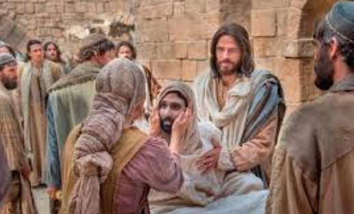 Jesús se dirigió a una ciudad llamada Naím, acompañado de sus discípulos y de una gran multitud. Justamente cuando se acercaba a la puerta de la ciudad, llevaban a enterrar al hijo único de una mujer viuda, y mucha gente del lugar la acompañaba. Al verla, el Señor se conmovió y le dijo: «No llores». Después se acercó y tocó el féretro. Los que lo llevaban se detuvieron y Jesús dijo: «Joven, Yo te lo ordeno, levántate».