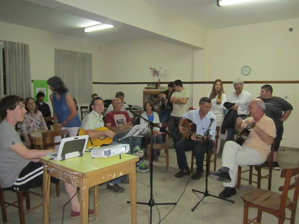 Despedida y guitarreada – Sábado 29 de noviembre de 2014 Se suspendió la actuación de los coros que estaba programada. Igual nos juntamos a comer unas ricas pizzas y empanadas; aprovechamos la ocasión para despedir y agradecerles a Diego y a Juan Cruz todo lo que trabajaron con nosotros durante este año. Después nos sacamos las ganas de cantar. Cantamos todos y de todo.