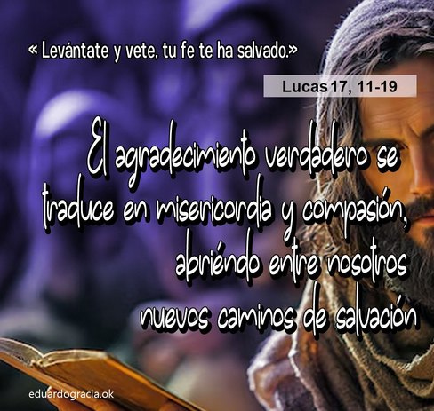 La salvación está abierta para todos: judíos, samaritanos, gentiles. Pero es necesaria la humildad de reconocer nuestra pobreza ante el don de Dios. Esta humildad se expresa en el agradecimiento, que es la respuesta del corazón a lo recibido gratuitamente. Y este agradecimiento se traduce en misericordia: una compasión profunda por el hermano necesitado. De esta manera, el ciclo de salvación se sigue abriendo, pues al dejarnos mover por la misericordia, nos convertimos en testigos de la presencia de Dios en medio de nuestros hermanos y hermanas.