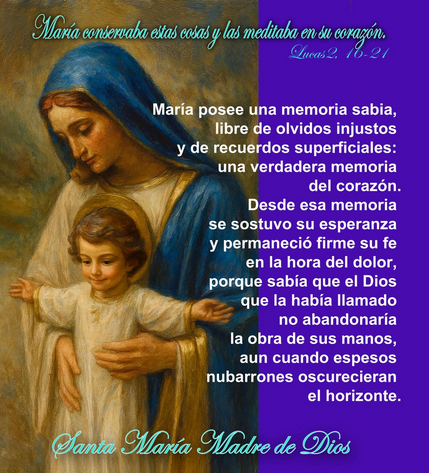 Necesitamos que la memoria buena de María nos arranque de nuestros egoísmos, conveniencias, tibiezas e inseguridades, para hacer memoria agradecida del pasado que nos permita mirar el futuro con esperanza y pasión por el bien, la justicia y la paz. Hace falta la memoria buena de un Dios que ha sido generoso con nuestra vida sabiendo rescatar todo lo bueno que hemos vivido, porque de la memoria del corazón brotará nuestra fidelidad.