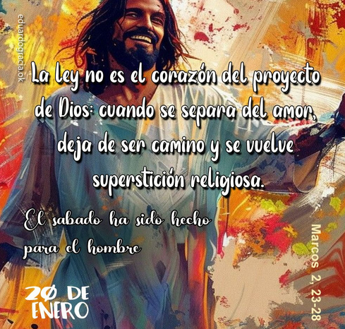 También hoy podemos caer en una religiosidad minuciosa y fría, donde la letra mata al espíritu. Podemos cumplir y, sin embargo, no amar. Por eso estamos llamados a descubrir en el domingo más los valores que el precepto, sin negar este último. Las cosas no valen porque están mandadas; están mandadas porque protegen valores esenciales para la persona y la comunidad.