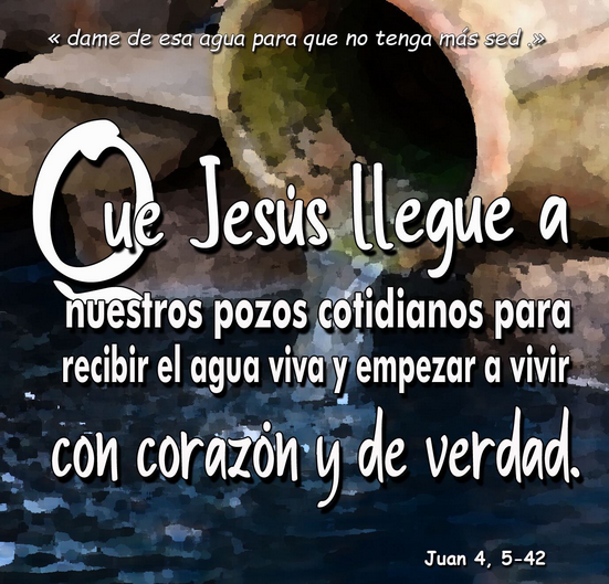Jesús sigue sentado junto a nuestros pozos cotidianos. Sigue pidiendo de beber. Y sigue ofreciendo el agua viva. Quien se deja encontrar por Él descubre una vida nueva: una vida que ya no depende solo de lo exterior, sino que brota desde dentro, en espíritu y en verdad.