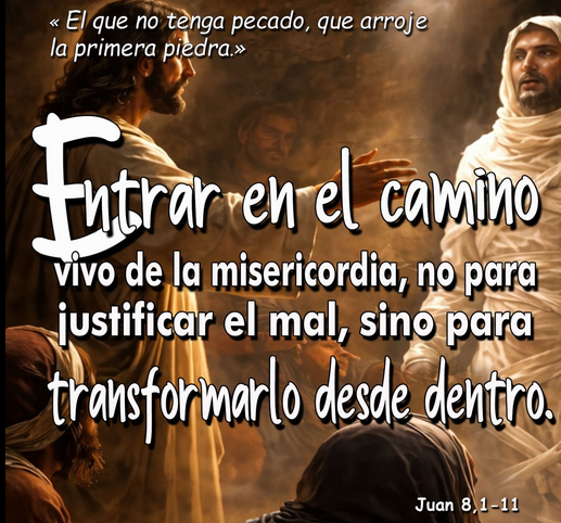 Jesús nos invita a salir de la lógica fría de la ley y entrar en el camino vivo de la misericordia. No para justificar el mal, sino para transformarlo desde dentro.