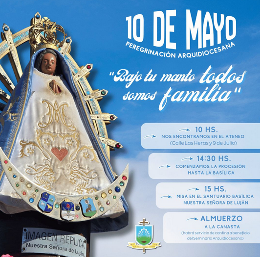 La alegría del Resucitado nos reconforta y nos encuentra año a año. Signo de esta hermosa comunión es que como comunidad arquidiocesana, cada año nos encontramos para rezar y agradecer juntos entorno a Jesús y al día de la Virgen, bajo su mirada celebramos que somos comunidad, que somos familia y de este modo seguir acompañándonos y animándonos unos a otros en el camino de la evangelización. Este año lo haremos el domingo 10 de mayo, contamos con vos, sos parte, te esperamos!!!